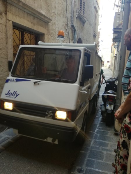 Amint ezen a képen jól látszik, az óváros rész sűrűn beépített, olyannyira, hogy autók nem is igazán tudnak benne közlekedni. Nem is ajánlott: az óvárosba autóval sorompós bejáratnál lehet bejutni, és horror áron lehet parkolni. Ellenben, ha a kocsit a Fornace nevű helyen, egy hétszintes garázsépületben hagyjuk, a garázs alsó kijáratától ötven méterre, a tengerparton található egy buszmegálló, ahonnan sűrűn indulnak körjáratok be a városba, és vissza – ráadásul ingyen.
