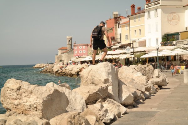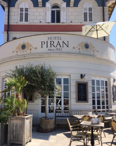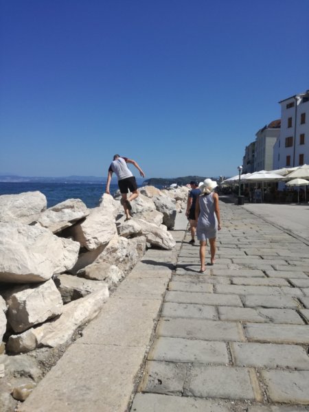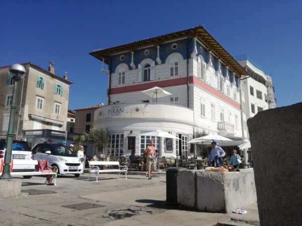 Ott tartottam tehát, hogy abszolváltuk Olaszországot, Horvátországot, de meséltem bázisunkról, Portorožról is; harmadik napunkra terveztük azt, hogy meglátogatjuk a szomszéd várost, Pirant — amely tulajdonképpen egybeépült már Portorož-zsal. Ha az élet úgy hozza, hogy valamikor a közelébe tévedtek, ki ne hagyjátok! Így néz ki madártávlatból: