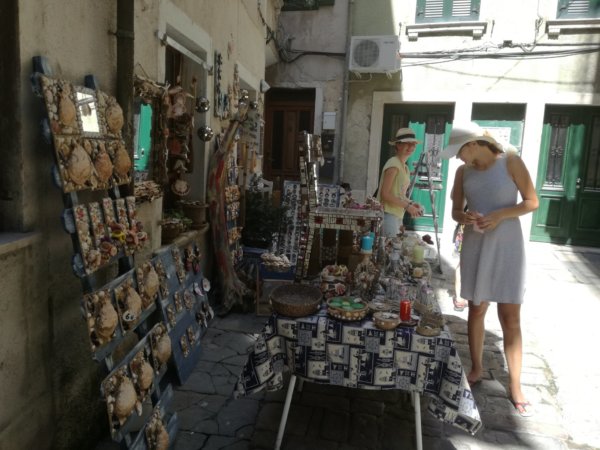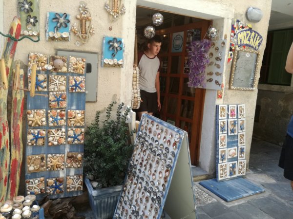 Jópofa kis ajándékbolt: a tulaj bácsi ott mossa a kagylóhéjakat, amikből aztán mindenféle dísztárgyat készít.