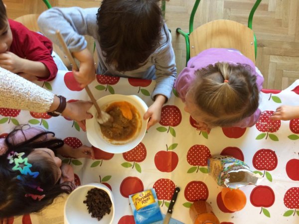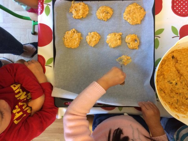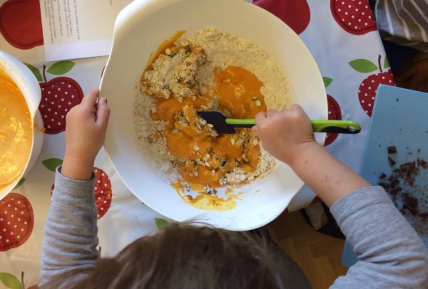 Amint azt meséltem, Nóra lányom (21) egy angol nyelvű magánoviban dolgozik Budapesten. Gyakran készítenek valamit közösen az ovisokkal, és nagyon büszke vagyok arra, hogy rendszeresen nyúlnak a blogomon található receptekhez. Most például egy réges-régi, pontosan 8 évvel ezelőtti sütőtökös-csokis kekszet készítettek el, mindenki nagy megelégedésére.