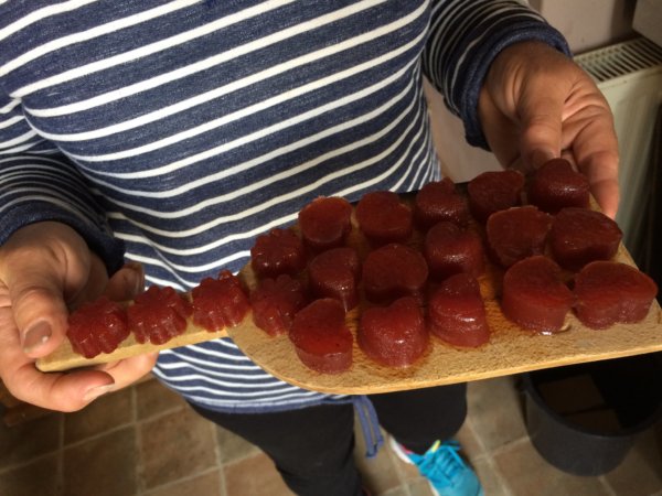 Jutka ezekből a kis birsalmasajt-darabokból cuki bonbon-szerűségeket is készített.
