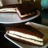 1. Megfőzzük a krémet. A tejet feltesszük egy lábasban melegedni a tűzhelyre, közben egy edényben összekeverjük a keményítőt, a cukrot és a tojássárgákat. Kicsit vehetünk ki a tejből, hogy könnyebb legyen összekeverni. Amikor a tej forr, habverővel hozzákeverjük ezt a bizonyos sűrítő folyadékot, és amint besűrűsödött a pudingunk, elzárjuk alatta a lángot. Belekeverjük a vajat. Kettévesszük a krémet: az egyik felét világosan hagyjuk, ebbe keverjük a fehér csokit, a másik felébe belekeverjük a mogyorókrémet.