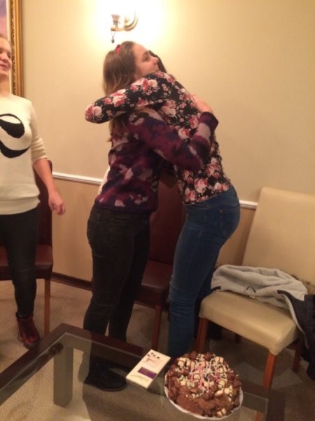 Az átadás pillanata: Zsófi barátnője, Lili nyakába borulva látható