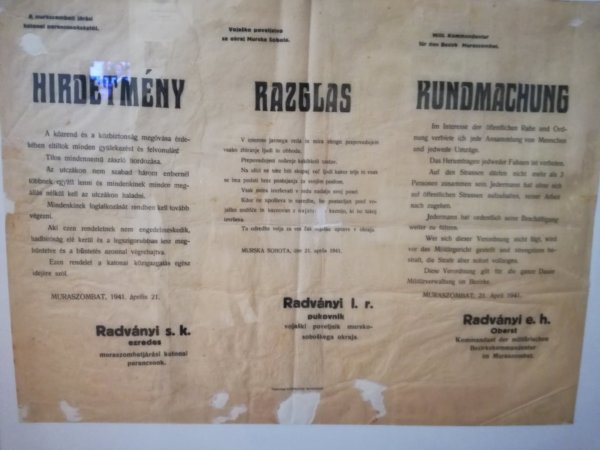 Sétám során nagyon hamar találtam magyar emléket.A városban elhelyezett táblák korrektül elirányítottak a centrumba, de nem ott, hanem párszáz méterrel arrébb, egy lakótelep parkolójában hagytam a kocsimat. Belvárosban ugyanis csak szlovénül volt kiírva, hogy mennyit is lehet parkolni legfeljebb, meg ilyen kis óra kellett volna hozzá, úgyhogy ezt hamar feladtam, két utcával arrébb teljesen problémamentesen időzhetett az autó. Elindultam a – gondolom – főutcán.Nem kellett sokáig mendegélnem, amikor olyasmit pillantottam meg, amiről azonnal tudtam, hogy nem hagyom ki: egy igazi steampunk helyet, a Bunkert.Amolyan menő hamburgerezős hely, bár ezt nem próbáltam ki, nem voltam igazán éhes, csak kíváncsi.Kissé poszt-apokaliptikus, a hatalmas szellőzőcsövek nemcsak díszletként, de bútorként is funkcionálnak. Sok-sok fém, persze vörösréz is…Enyhén viseltes vegyvédelmi szerelésben életnagyságú figurák.Órák és fogaskerekek, mint minden magára kicsit is adó steampunk helyen. Alább a mosdó tükre. Sok lánc a plafonon, csillár formájában.Szóval, itt valami egészen elképesztő belsőépítészeti és berendezési munkát végeztek, mindenképpen érdemes betérni, aki idegenkedik ettől a stílustól, tekintsen rá úgy, mint egy múzeumra, ahol enni is lehet…:-) A kiszolgálás egyébként remek, és hadd tegyem hozzá azt is, hogy a mosdó gyönyörű tiszta. És nem szokványos.Nos, a Bunker után a Szapáry-kastélyt kerestem meg, amely a városka parkjában található. A parkban van egy aranyos kis tavacska vadkacsákkal, a partján körben padokkal. A kastélyban hely- és kultúrtörténeti kiállítás látható, bevallom, nekem fájt, hogy magyarul nem írták ki az infókat, csak szlovénül és angolul. Pedig egy csomó magyar nyelvű emlék is kiállításra került, mindjárt mutatom. Szép sorban. De haladjuk kívülről befelé!A kapun át a négyszögletű kastély udvarába jutunk, innen nyílik a bejárat a múzeumba.Az általában szokásos régészeti leletek – korsók, cserépmaradványok, és a többi – után haladhatunk szépen korról korra, egy ilyen elegáns termen át. Előbb a főúri családok életébe nyerünk bepillantást. Aztán a parasztokra jellemző otthont mutatják be. A konyha. Következnek a történelmet bemutató termek, a világháborús emlékek.