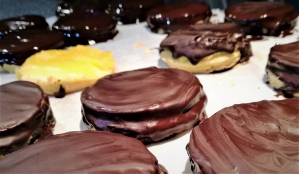 - Olvasszuk meg a csokit vízgőz fölött, vagy óvatosan, fokozatosan, mikróban, és keverjük bele a kakaóvajat. Vonjuk be a csokival a zselés piskótákat, és hagyjuk megdermedni.