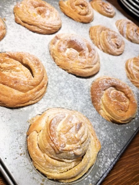 Ha nem ettetek még cruffint, akkor itt az idő. Nem mondom, hogy egyszerű elkészíteni, mert akkor szimplán hazudnék; de aki szereti a kihívásokat, annak kifejezetten ez a süti való. Croissant muffin formában – a valaha kóstolt összes muffin közül nekem ez ízlik a legjobban.