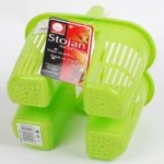 - Százforintos boltban vett evőeszköz-tartó, ami bőven belefér az eredeti helyére. Ezzel kapcsolatban azt mondta az egyik lakáscikkekkel foglalkozó bolt tulajdonosa – mert aztán mindenféle boltokban kutattam – hogy nem biztos, hogy ez jó megoldás, mert ezek az olcsó kis tartók lágy műanyagból készültek, magasabb hőmérsékletnél megolvadhatnak, és kárt tehetnek a mosogatógépben. Persze, csupa -hatnak meg -hetnek, de mi van, ha tényleg?