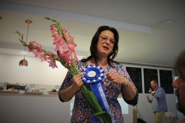 Ez pedig egy másik díj, amelyre Peti, aki adta, azt mondta, hogy ez a Best of Süti-cím, az áll ugyanis rajta, hogy BOS. Kicsit hosszabb faggatásra elárulta, hogy kutyakiállításokon ez a szalag jár a legjobb ellenivarú kutyának (tehát, ha a kutyakiállítás-győztes eb mondjuk szuka, akkor megválasztják hozzá a legszebb kant, és övé ez a kitüntetés).