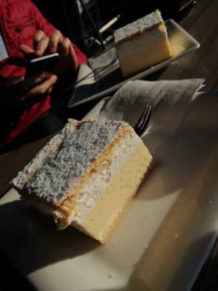 A krémes: azt hozta, amire számítottunk. Semmi extra, csak a legenda. Tudom, hogy tőlem nagyképűségnek hangzik egy sütemény-bírálat, ezért nem is bonyolódom bele. A lényeg az, hogy ne a krémesért menjetek Bledbe, de persze, ha megkívánjátok, egyetek nyugodtan.