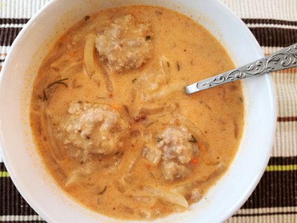 3. Tegyük egy edénybe a darált húst, ízesítsük a felsorolt fűszerekkel, és keverjük el benne a tojást meg a zabpelyhet is. Vizes kézzel formázzunk belőle méretes diónyi gombócokat – a pingponglabda szerintem már nagy -, és a leves főzési idejének a felénél, azaz kb. 15 perc forralás után tegyük a répa közé a gombócokat. További 15.20 percig főzzük – egy gombócot ellenőrizzünk le majd, hogy lássuk, átfőttek-e.
