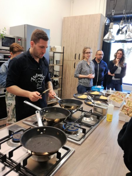 Amikor megérkeztem Újpestre, a Szent István tér 6-ba, egyrészt örültem, hogy végre tényleg a jó címen vagyok – először a Szent István park 6-hoz mentem… -, persze, elkéstem, de ennek köszönhetően már a roppant finomnak ígérkező szarvasgombás tojásrántotta illatát éreztem meg egyből, amelyet Hack Barnabás, az Ételműhely gasztrostúdió séfje készített.