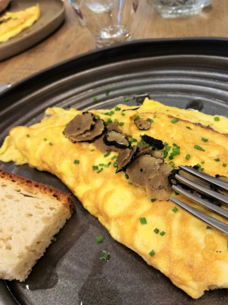 Hát ilyen You Tyúkos tojásból készült a mi tojásrántottánk – finom szarvasgombával tálalva. A szarvasgombát Farkas Szilvia hozta, aki elkötelezett a hazai szarvasgomba fogyasztás népszerűsítése mellett. Tudtátok, hogy évente Magyarországon több mint egy tonna szarvasgomba – na jó, a szóismétlés elkerülése érdekében mondjuk azt, hogy trifla – terem? És hogy csak nálunk található meg az egyetlen édes fajta? Szilvia egyébként nemcsak a gombakereséssel foglalkozik, hanem gombakereső kutyák kiképzésével is. Amikor erről beszélt, megjelent szemem előtt Manci, a mi csoki labradorunk, amint a zalai erdőkben szarvasgombát talál, de aztán Szilvia kicsit letörte a lelkesedésemet, mert hogy hát pont a zalai erdőkben nem igazán van trifla. Ellenben az Alföldön!! Na, ott rengeteg.