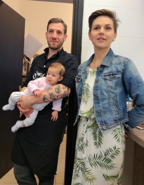 Barnabás tavaly óta működteti a helyet feleségével, Iklódi Dórával, és mindig ott van velük féléves kislányuk, Olívia is. Az Ételműhely egy barátságos, otthonos hangulatú rendezvényhelyszín, ahol Dóra és Barnabás workshopokat, vacsorákat tart, de céges események megtartására is kiadják. Most például a You Tyúk rendezett egy reggelit, amelynek során a fenntarthatóság jegyében működő vállalkozások mutatkoztak be.