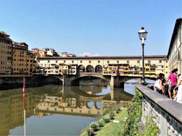 Az Uffizitől karnyújtásnyira található a Ponte Vecchio, az Arno folyón vezet át, és csupa ékszerbolt található rajta. A XIV. században épült, és ez volt az egyetlen híd Firenzében, amelyet a II. világháború idején a visszavonuló német csapatok épségben hagytak, az összes többit felrobbantották.
