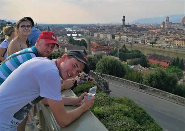Így aztán elképzelhető, hogy felérve nem teljesen őszinte a mosolyunk. De később majd tudjuk értékelni, hogy láttuk felülről Firenzét, amely a reneszánsz bölcsője.