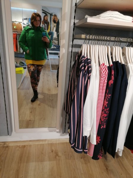 Szezon vége felé közeledve 40 százalékkal le volt árazva, mit mondjak, nehéz volt uralkodnom magamon – de végiggondoltam: van egy nagyon meleg, egyszínű világosszürke kabátom, térdig ér, prémes gallérja és kézelője van, csinos, szeretem. És van egy másik, szintén nagyon szuper kisebb kabátom, csípő alatt ér, ha kocsival jövök-megyek, ez a jobb, hiszen kiszállok, beszállok, a legtöbb időt a kocsiban, vagy abban a helyiségben töltöm, ahova megyek. Viszont: virágos. Tehát csak egyszínű nadrághoz/szoknyához tudom felvenni, a kedvenc virágos nadrágommal például összeférhetetlen. Viszont a zöld kabát áthidalná ezt a tátongó űrt, hiszen szintén rövid, könnyű viselet, olyan kis futkozós, és hát a színe…! Nagyon tetszett, de végül lemondtam róla: a január az egyik leghúzósabb hónapunk, rengeteg számla jön, a bevételeink pedig jóval kevesebbek, mint az összes többi hónapban – tehát nem, nem, nem lehet, fegyelmezettnek kell lennem.