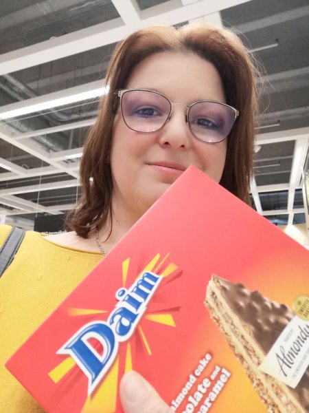 Mivel saját cukrászdánk van, és nem is rossz, nem igazán szoktunk máshol sütit venni, legfeljebb tanulási, tapasztalási célzattal. Nem nagyképűségből nem eszünk máshol, hanem mert bőven van otthon. De most úgy voltam vele, hogy hát szegény Zsófi, ha már nem jöhetett velem, mivel iskolában kellett lennie, megörvendeztetem. Beszaladtam a boltba, kivettem a Daim feliratú dobozt a fagyasztóból, lőttem vele egy nem túl előnyös szelfit, átküldtem Zsófinak, hogy örüljön, és beálltam a pénztárba.