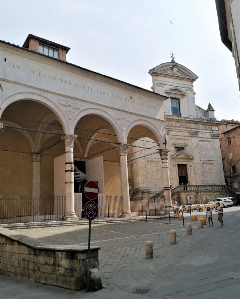 A XII. század közepe táján kezdték építeni, 1179. november 18-án megtörtént az épület pápai felszentelése, de az építés folyt tovább: 1348-ban a nagy pestisjárvány vetett véget annak a nagyratörő tervnek, hogy Firenzének fityiszt mutatva ez a dómépület csupán a kereszthajója lesz majd a véglegesnek, amelyet 50 méter hosszúra, és 30 méter szélesre terveztek. A járvány következtében azonban a lakosság harmada meghalt, sokan elköltöztek, így aztán Siena Firenzével folytatott korábbi pozícióharca eldőlt: utóbbi megerősödött, előbbi pedig lemaradt a fejlődésben. Ennek is köszönhető egyébként, hogy az ódon falak között Firenzével szemben nem a reneszánsz, hanem a középkor művészete köszön ránk állandóan.