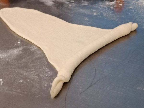 3. A kiflik formázása. A gombócokat szépen, egyesével háromszögre nyújtom.