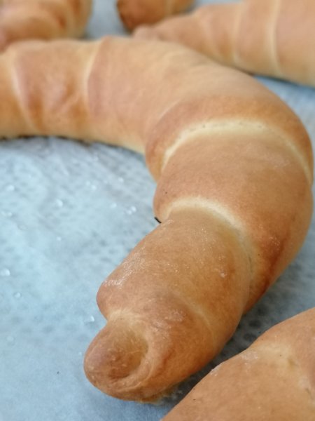 Aztán telt-múlt az idő, és újra kezdtem a kelt tésztás kalandokat, sőt, mostanában kovásszal is sütök, változó sikerrel. És most kellett rájönnöm arra is, hogyan lesz a kifli olyan “igazi”, hogy a csücske ropogós, és maga a kifli nem dundi. A titok annyi, hogy tényleg nagyon vékonyra kell nyújtani.