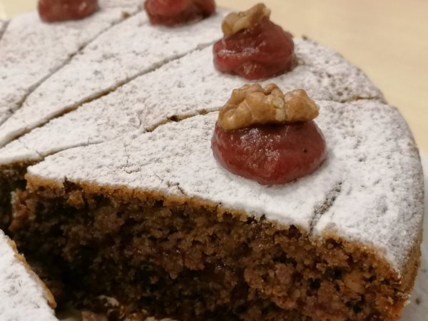 3. Hagyjuk kihűlni, majd vízszintesen félbe vágjuk, és betöltjük az erre szánt szilvalekvárral. A tetejére nyomhatunk habzsákból kis lekvár-gombócokat, díszíthetjük dióval. De a lényeg: Attól havas szilva, hogy leszórjuk porcukorral. 🙂