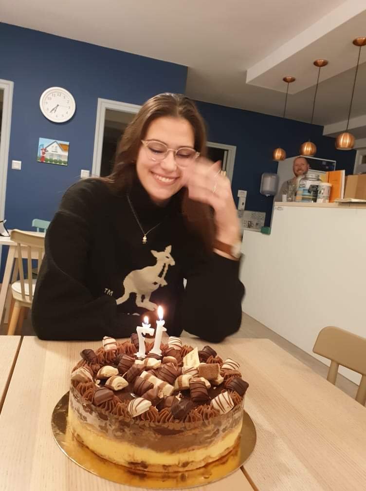 A szülinapi ünnepséget a cukrászdában tartottuk, záróra után, persze, és mindössze négyen. A szerdától életbe lépett kijárási korlátozások miatt egyedül Bence jött haza Pécsről, Bálint a menyasszonyával, illetve Nóri a férjével nem tudott csatlakozni, mert nem értek volna vissza Pécsre, Pestre este 8-ig… Ilyen idők ezek.